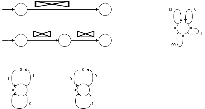 a's precedem todos os b's que, por sua vez, precedem todos os c's (donde que todos os a’s precedem todos os c's), podendo não haver nem a's, nem b’s, nem c's.a, acabam em cc e têm exatamente dois b's.aa e bb como subpalavras.bba não é subpalavra.✓ A linguagem das palavras sobre que não têm prefixo